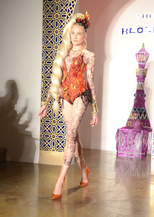 ahh the fabulous, the BLONDS. A NYFW favorite show in its glamour tradition, the BLONDS gave us a sweet flavor for spring 2015. The usual gold, studs and corsets were aplenty, but we got a lot of heart and flowers too to go with the Louboutins. The enormous hair braids created by TIGI added a more than awesome edge to go with a very genie inspired collection. Here are some favorites from backstage and the runway.