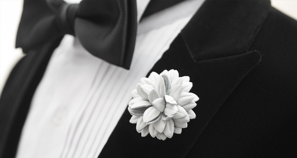get fleur’d. Lapel Dahlia flower pin in white.