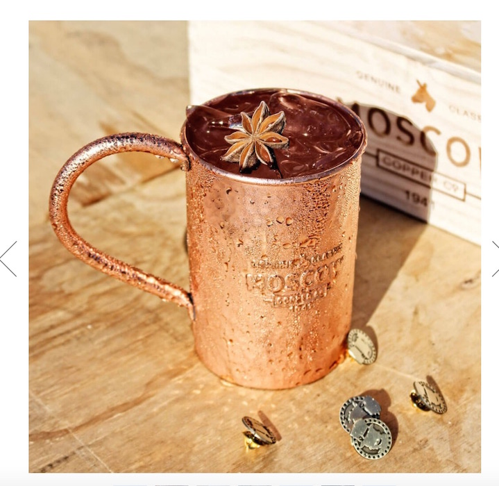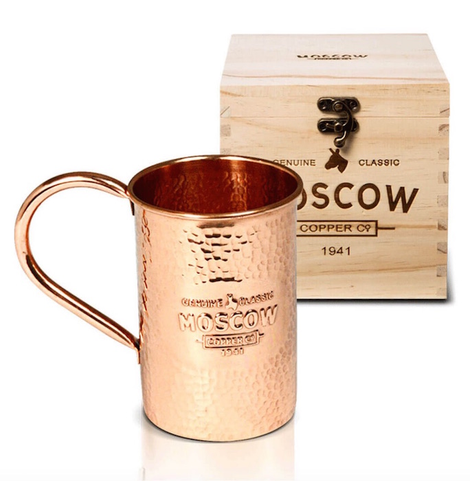 MOSCOW MULE hammered copper mug: “Wrap your fingers around The Original 100% Pure Copper Moscow Mule Mug and experience that same feeling Grandma Sophie felt when she created this mug nearly 100 years ago. This is the real thing.”