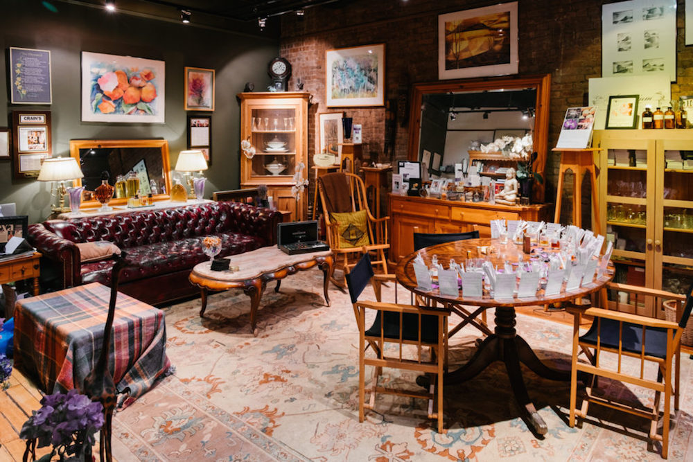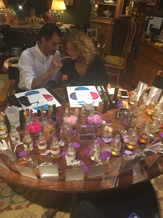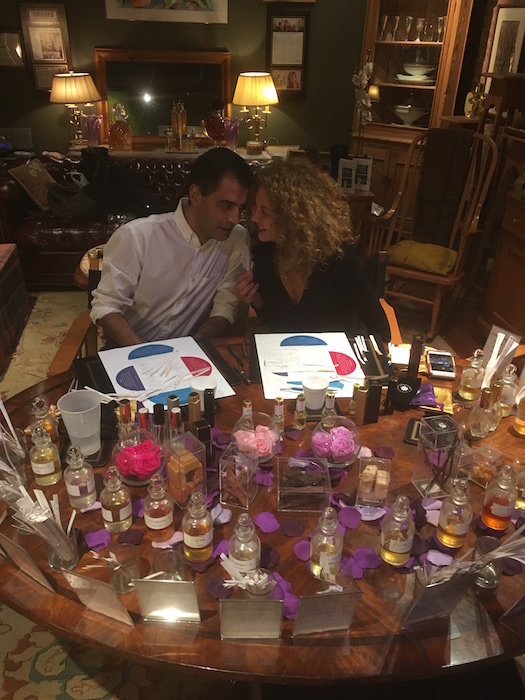 Feeling like I was in an episode of The Bachelorette, I set up a surprise activity with the ‘date du jour’ at the intimate maison tucked away in TriBeCa, THE SCENTARIUM. A few typical neighborhood stairs down and voila, a gorgeous warm room of romance filled with antiques, flowers, and bottles of fragrance + oil, and I’m already in love- though not sure if it’s the fragrant air or the company. The founder and mixmaster Sue Phillips was just as warm and knowledgeable as the beautiful room that spoke to my heart and senses.