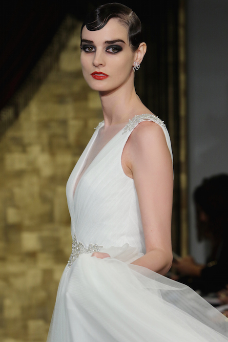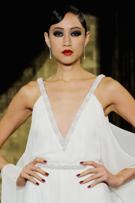 The 1920’s Opium Den comes to mind… take a look at what we loved. The sultry hair + Makeup is stunning too. THEIA bridal fall 2016 commentary + selects by Brigitte Segura.