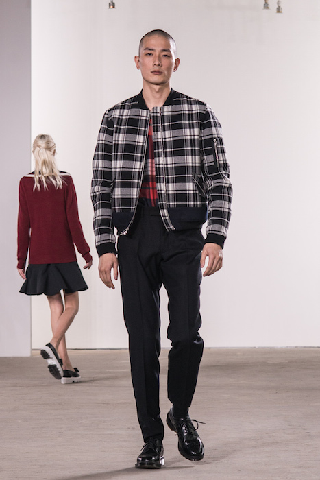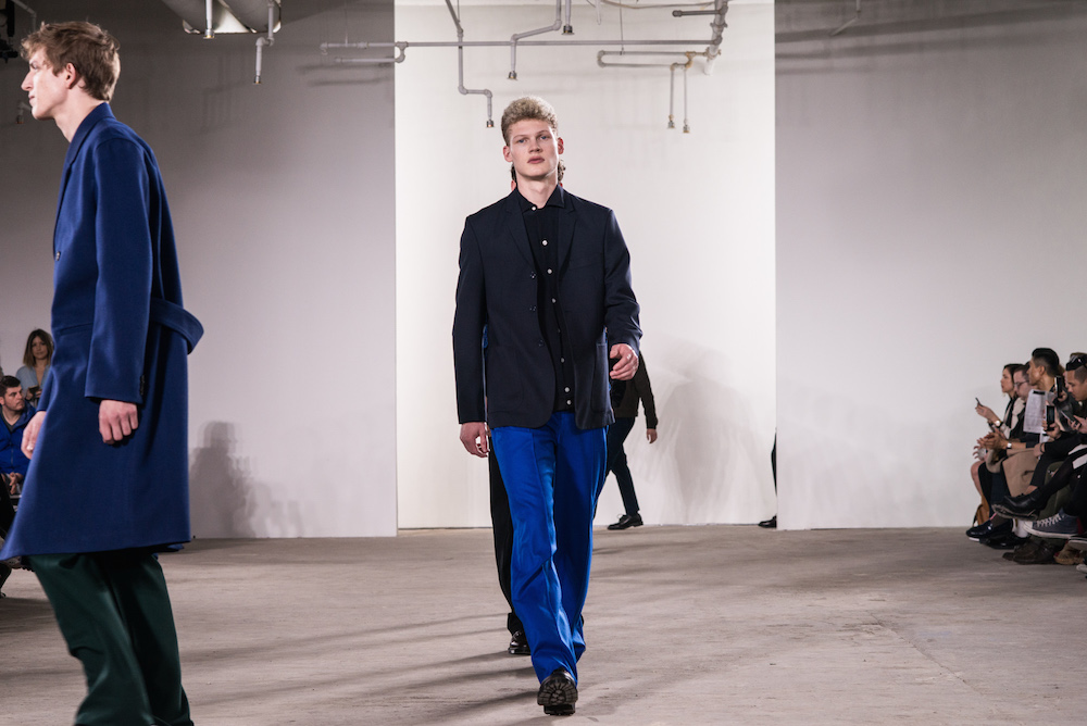 Girls + boys melange on this runway. TIMO WEILAND fw16 flaunts tweeds, textures, and bursts of blue. Shown at Skylight during the NYFWM cfda shows, the show previews womenswear fw16 alongside the menswear.