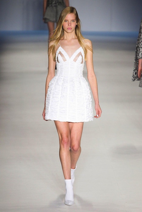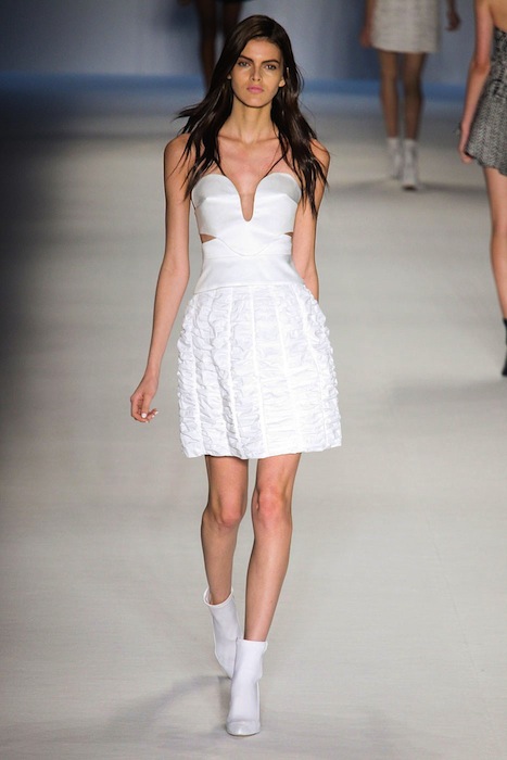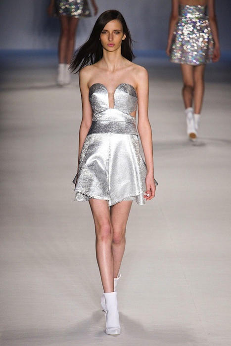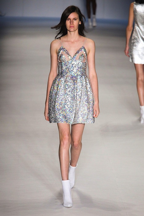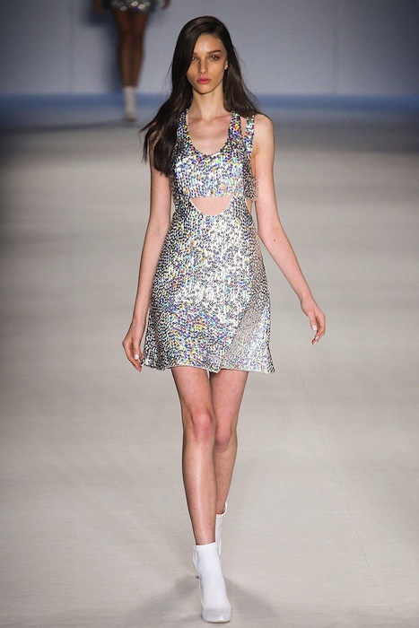 Sparkled babes on the Sao Paulo runway, with a batch of cocktail dresses at TUFI DUEK spring 2015 SPFW. Here’s a view of a few favorite wearable cuties in sequined silver numbers, textured whites and a couple of LBDs for the warm days.