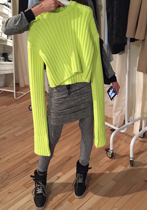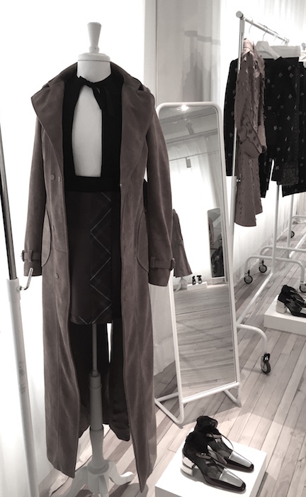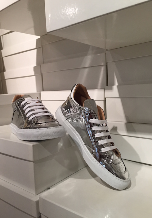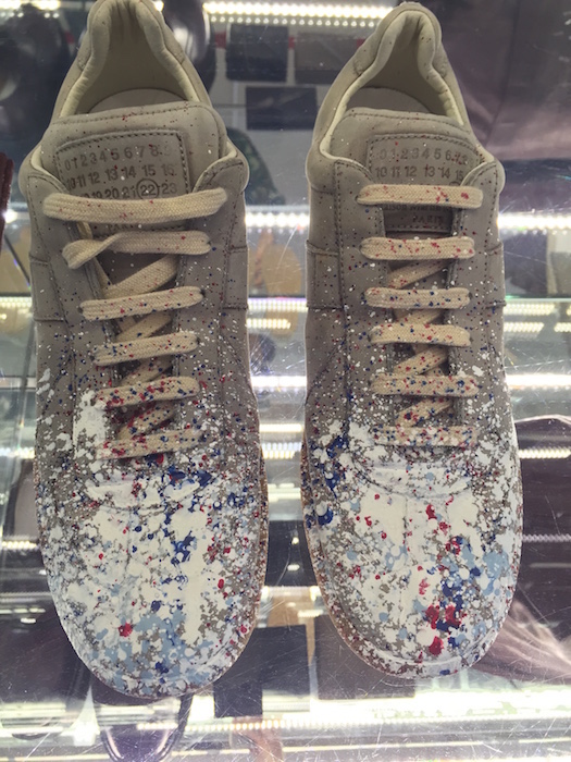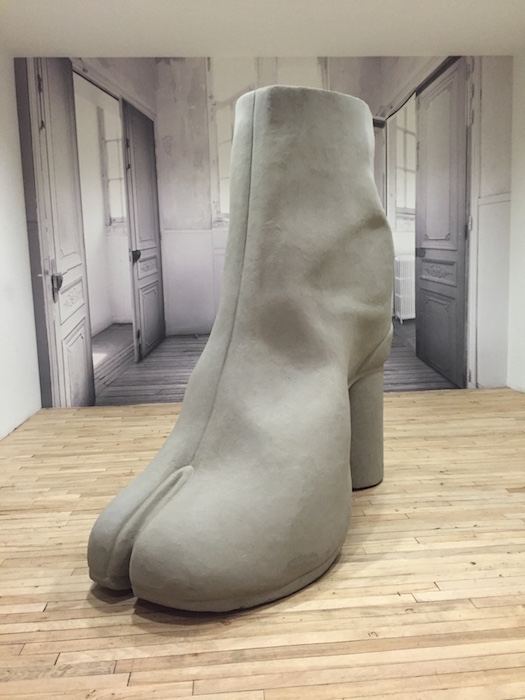 Taking a closer look, greeted by a giant Margiela Tabi Boot! A detailed view of what’s to come at Maison Margiela and MM6 Maison Margiela for fall 2015. Without a doubt, the minimal looks got a subtle dose of glitter and shine. Here’s a few of our favorite looks from the runway collection, the ready to wear collection for women and men, as well as MM6 Maison Margiela shoes + accessories.