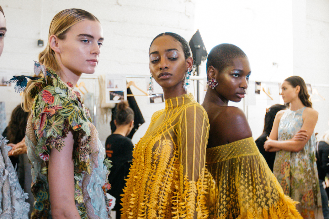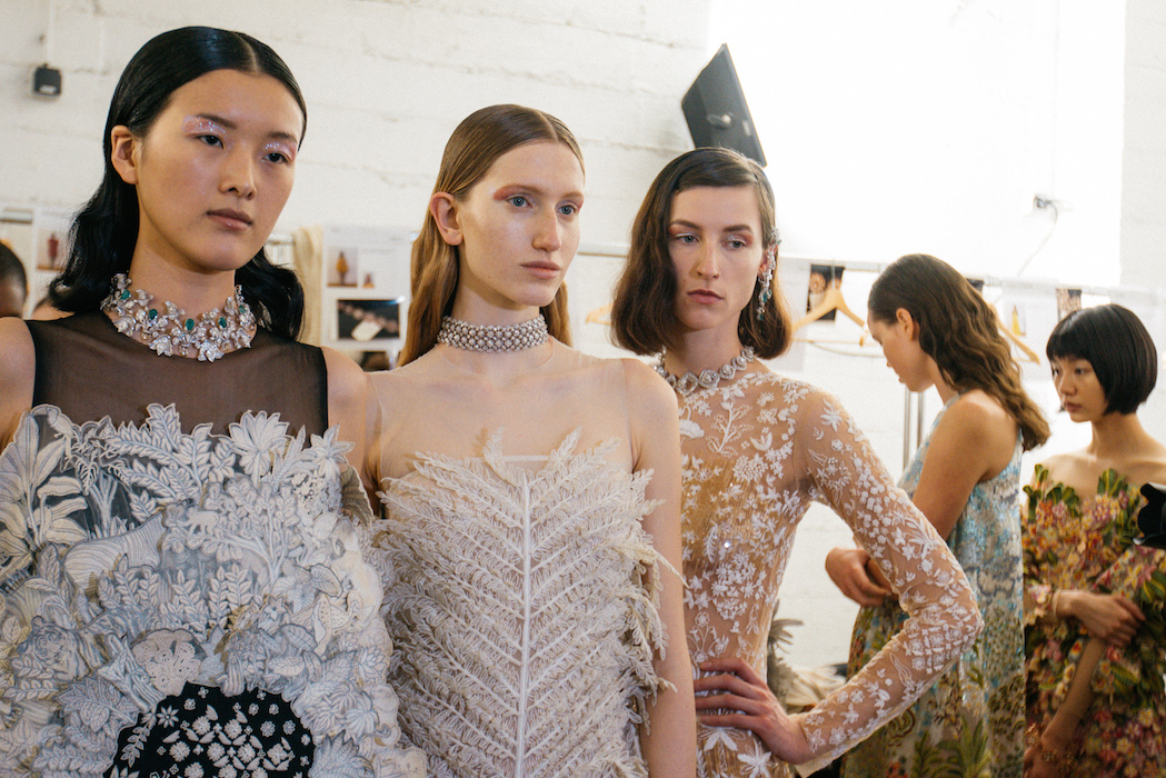 Fluid, flirty and light in nature. RAHUL MISHRA’S couture ss20 collection of flowing gowns pieces fuse with details of marvelous embroideries. Voluminous Organza + tulle details alongside pops of color in yellow and fuchsia light up the neutral flowing runway. A view of favorite looks and moments behind the scenes and on the runway.