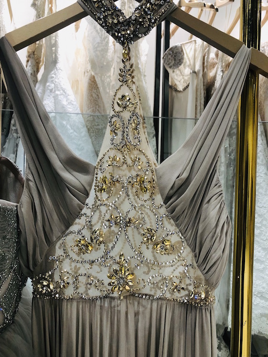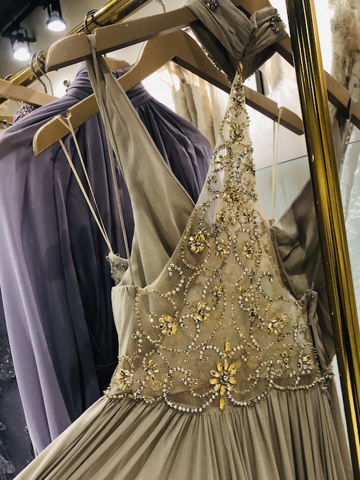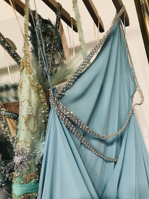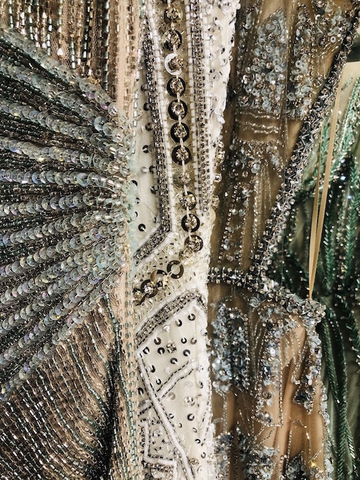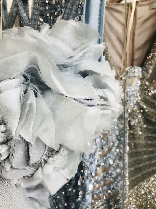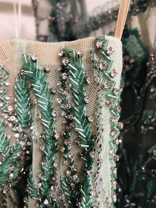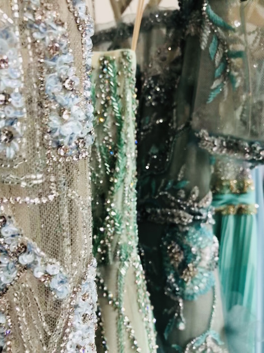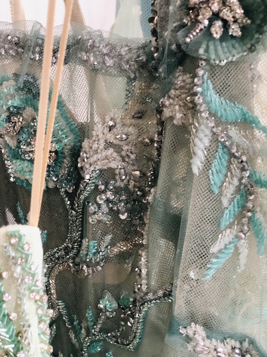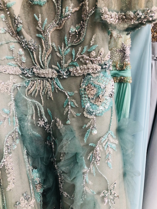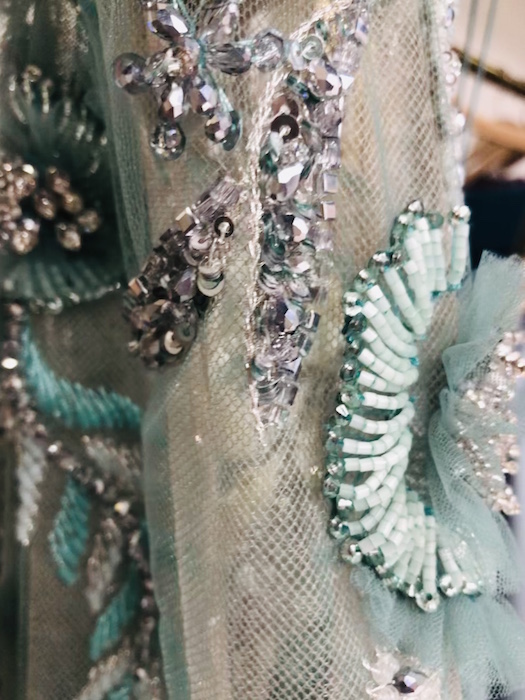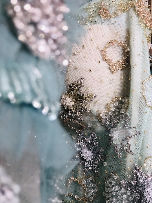 UP CLOSE: Reem Acra SPARKLES the romance for spring 2022. Pale blues, dusty greens and pretty pinks in lightweight chiffons dance through intricate embroideries, bead work and metallic details. Inspired by the Beaux Arts period and the strength and beauty of New York City’s skyscrapers, Reem’s take on luxury and glamour is infused by ultra-feminine details. Pretty.