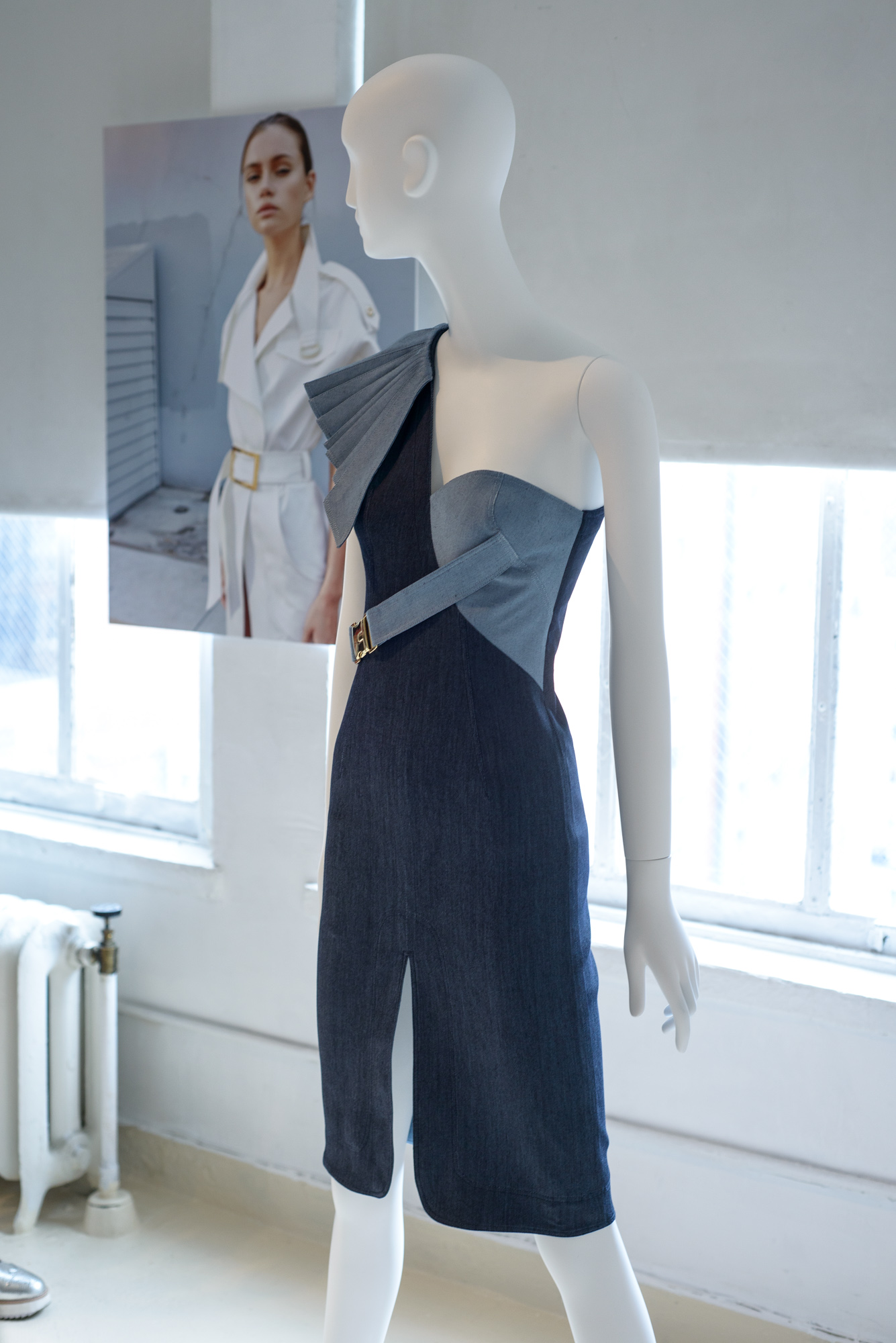 Putting a spin on denim by using the reverse side for special details, Verdad put a daring spin on corporate classics + dresses.