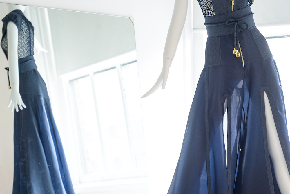 Our editor Brigitte took a tour of the details with the designer where she was shown all the detailing as Louis explained the way in which he is using denim as his base, from career wear to evening wear. Detailed elements of structure, drama and movement enhanced the aesthetic of the collection. The workmanship and the experienced knowledge of tailoring were evident up close in Verdad’s work, as well as his intention to make every woman look fabulous and flawless.