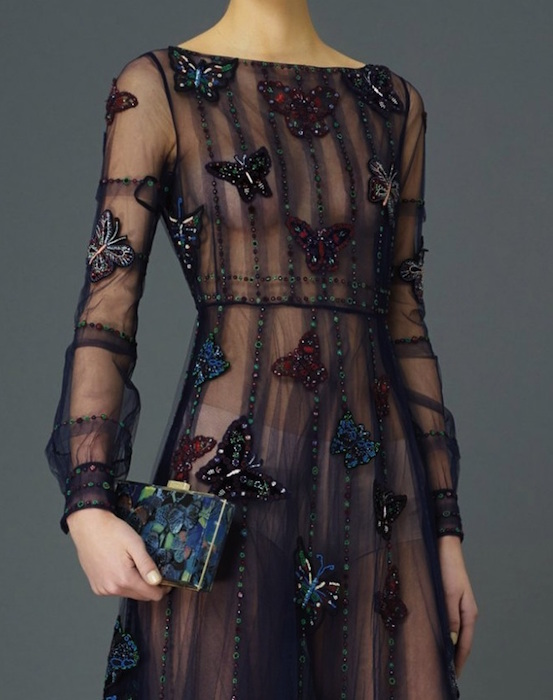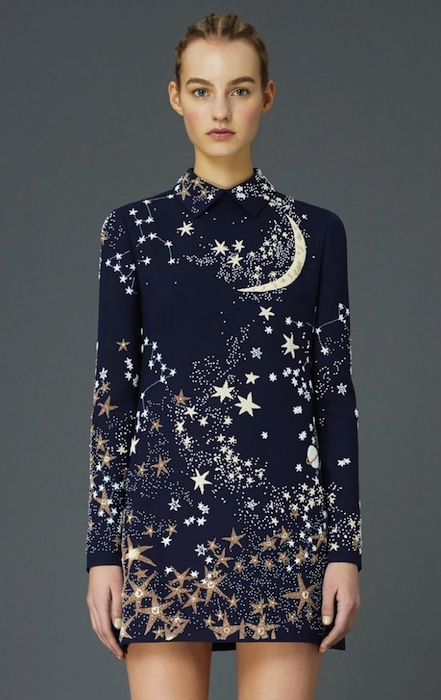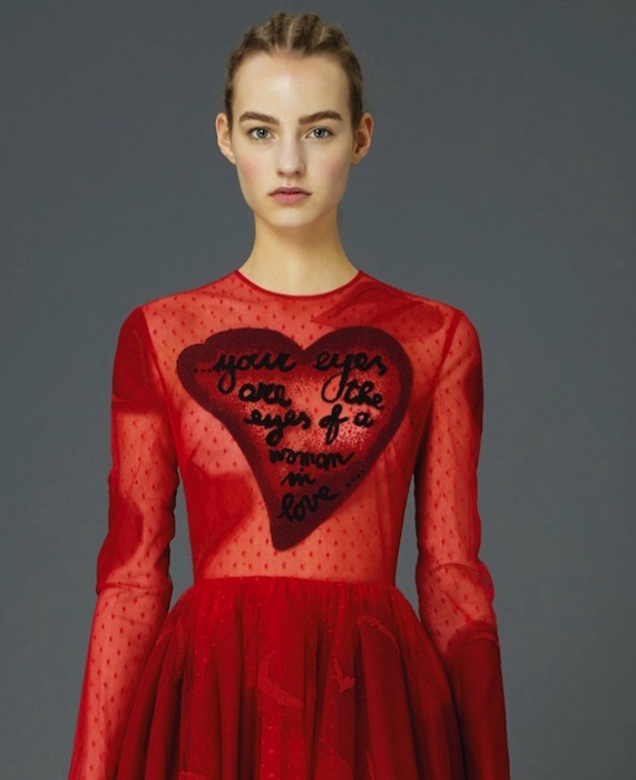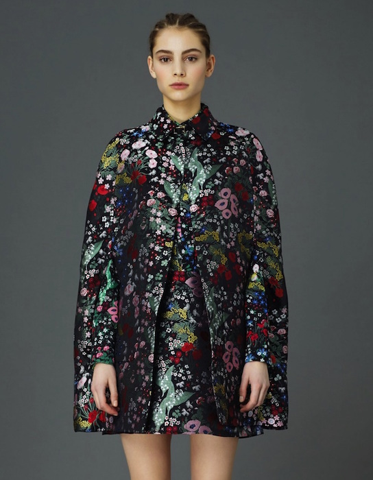 So much to love at Valentino! We’re smitten by the boots at first glance, from stripes to florals for the feet. This collection wins for the biggest selection for prefall 2015. From stars to astro-friendly space patterns, embellished a la Valentino, to delicious floral jacquard patterns in capes, flirty dresses, and sheer gowns. Consistently adding to the romance, a quirky heart adds to the sweet flavor… ‘your eyes are like the eyes of a woman in love’.