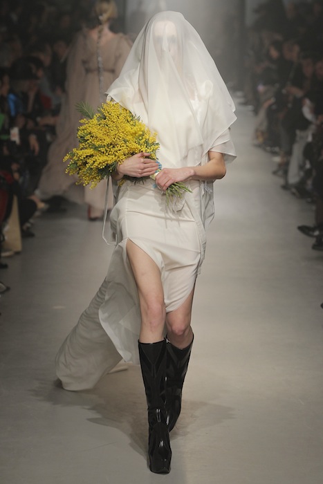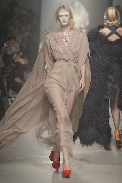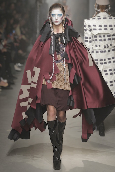 Vivienne Westwood Gold Label once again allowed us to enter into the designer’s world for fall Winter 2013. A combo of cultural influences, this season the brand looked at the way the Crusades united Italian, Arab, and also English ideals for a magnificent melting pot of style. No time machine necessary to experience the out-of-this-world experience Westwood provides viewers through the four corners of inspiration (historical, structure, ethnic, and ‘flou’).