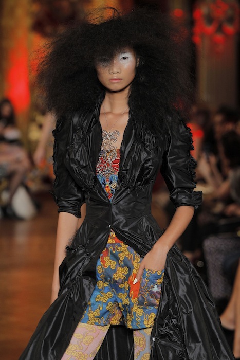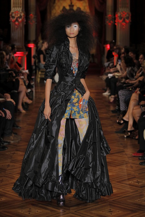 Global exotic: Opulant, cheeky, and nothing less than creative drama from [Dame] Vivienne Westwood Gold Label for ss13. The runway collection hosted at the British Embassy in Paris also celebrated the UK Government’s GREAT Campaign, highlighting areas of British excellence. Dame Westwood was selected for the category ‘Creativity is GREAT,’ showcasing Britain as a world class destination… and what eye candy to be had!