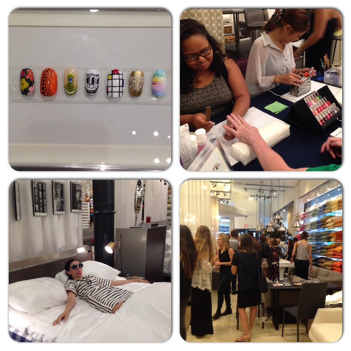 “The event was off the charts cool. Located at 22nd and Broadway at the Wolf Home headquarters, the outcome was a visual delight for me and hundreds of others in attendance. Hannah Bronfman was spinning great music as the crowd enjoyed custom nail art provided by Vanity Projects (check out the live snaps Nicole took). The eclectic mix in attendance was a fusion of artists as fashion, beauty and lifestyle bloggers. I recognized so many faces and as an artist myself, appreciated how much support Art Markit was given. Baron Von Fancy, one of my street artists, created the signage and other clever products within the store itself.”