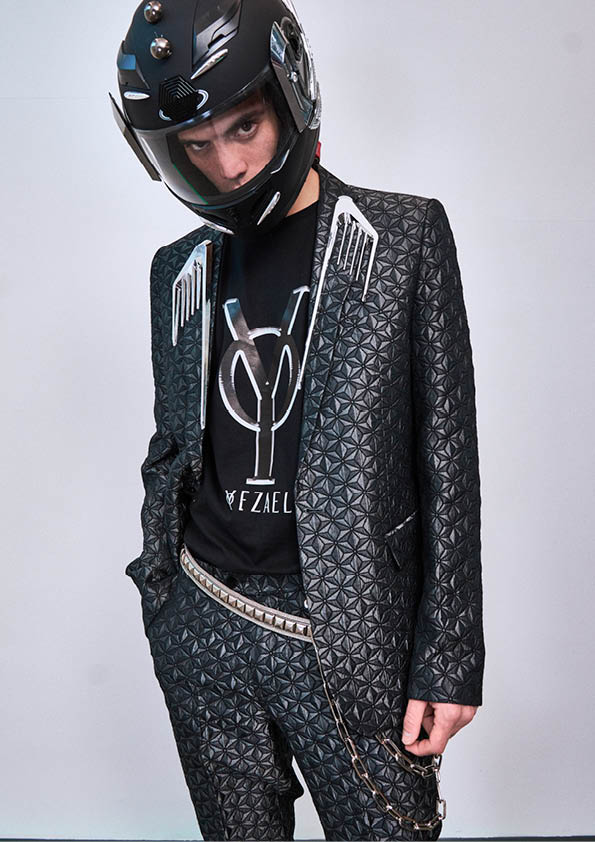 NEW FASHION: Introducing young designer Yezael Mechanicalcore fall 2020 collection shown during Milan Fashion Week. A multi textural collection of UNISEX streetwear fashion, with a punk grunge // industrial influence. Luxurious jacquards mix with shredded seams…