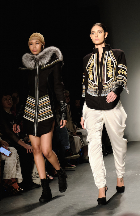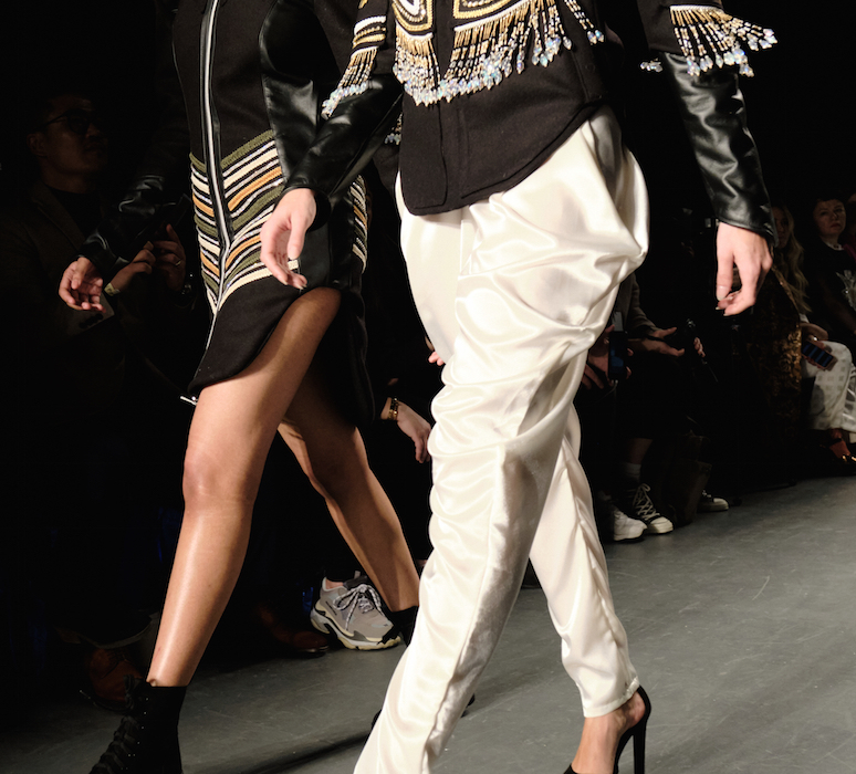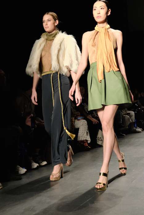Here’s a peek at some of the details on the runway, with all the shimmer, shine, beading and style strutting just a few inches away from our front row view. Ready to wear designers are listed
