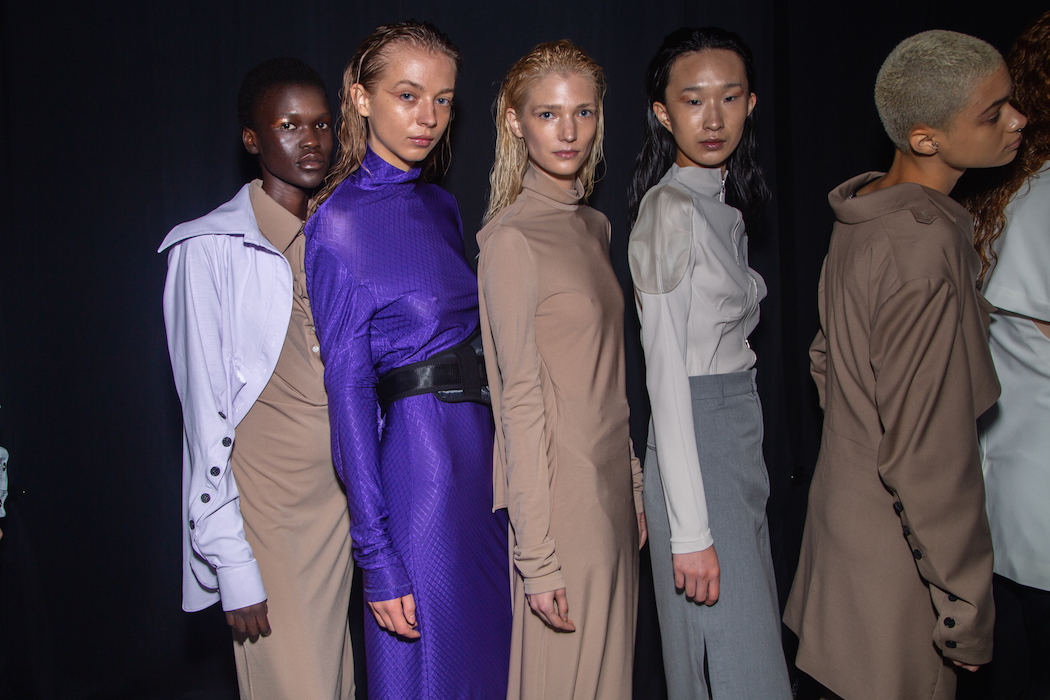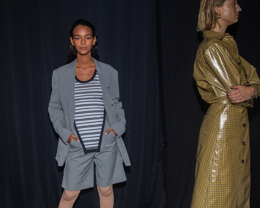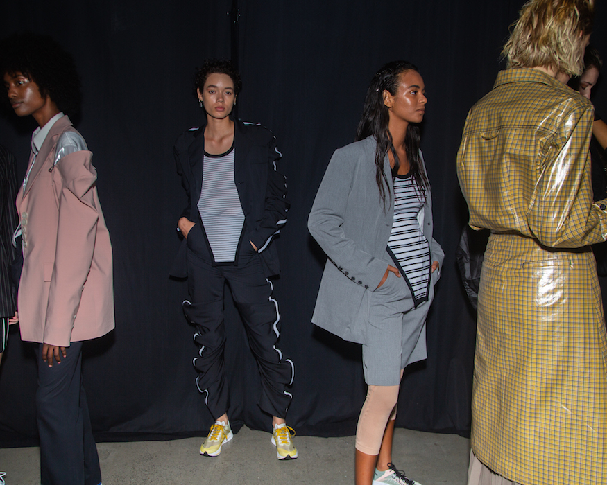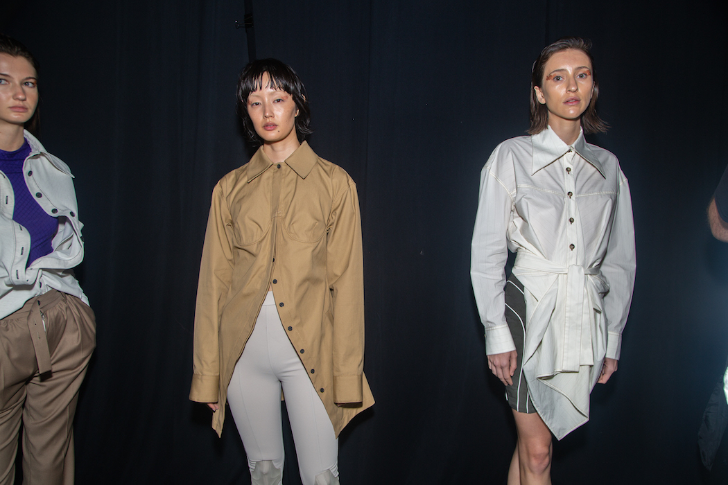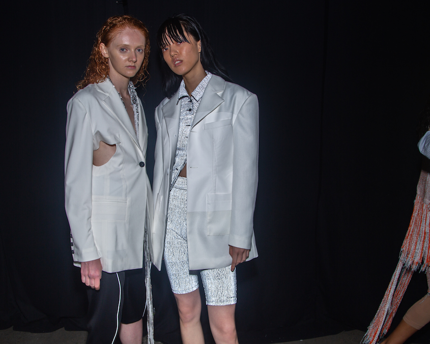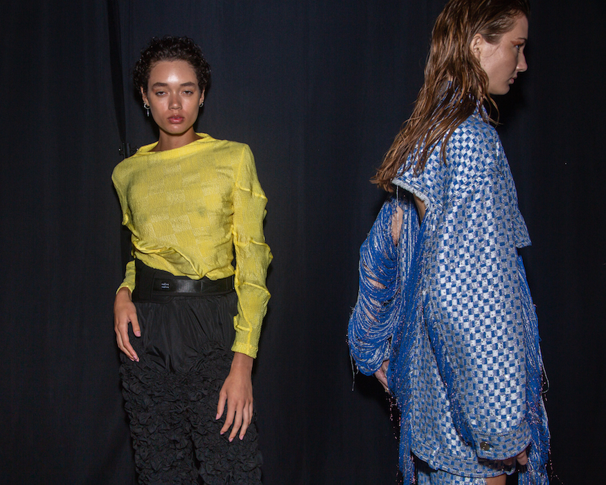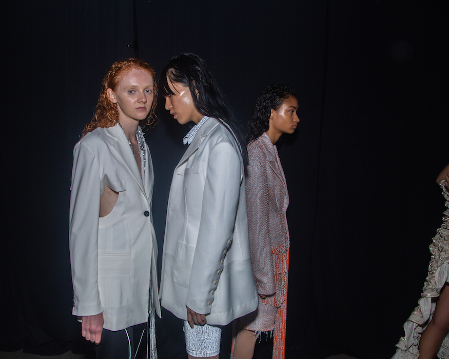 MODERN tailored, layered, textured, shredded, dimentional and cool- muted in tones, a little sparkle – and that nice pop of yellow. A nice young designer to discover this season, C PLUS ss19 NYFW. Here’s a quick look at the discovered cool behind the scenes and the runway.