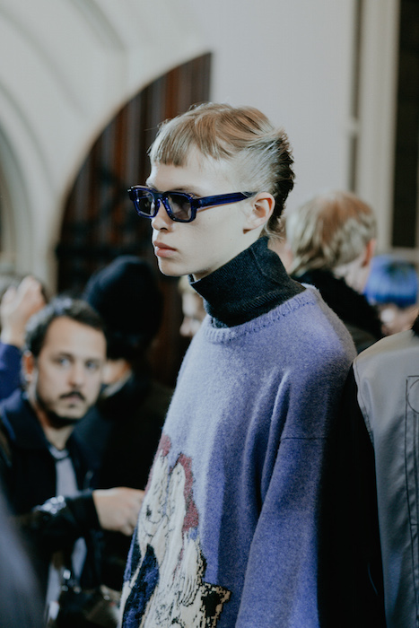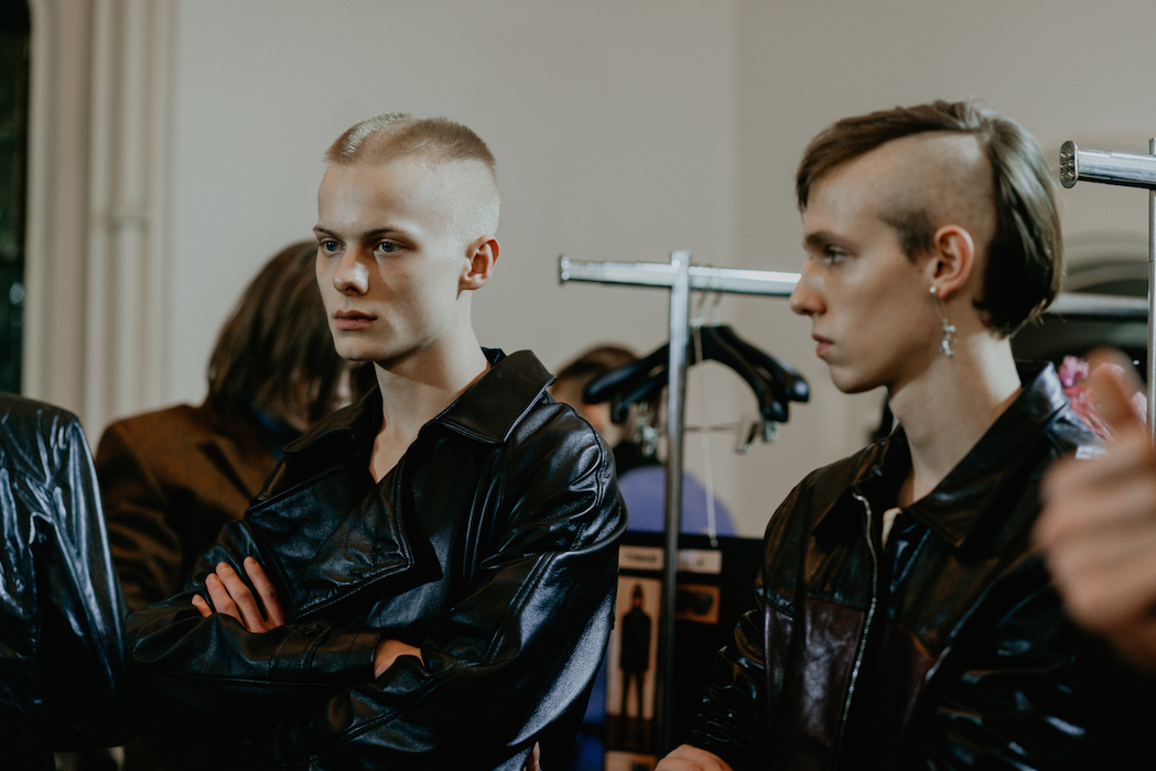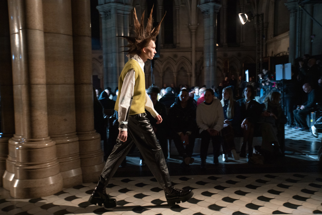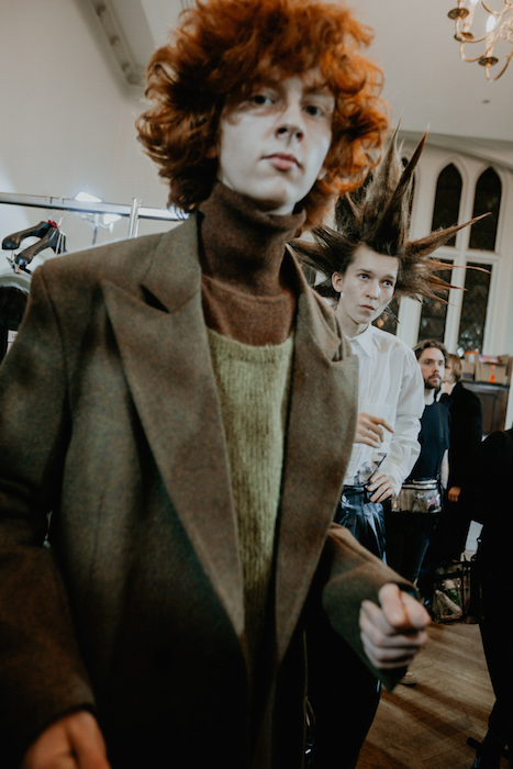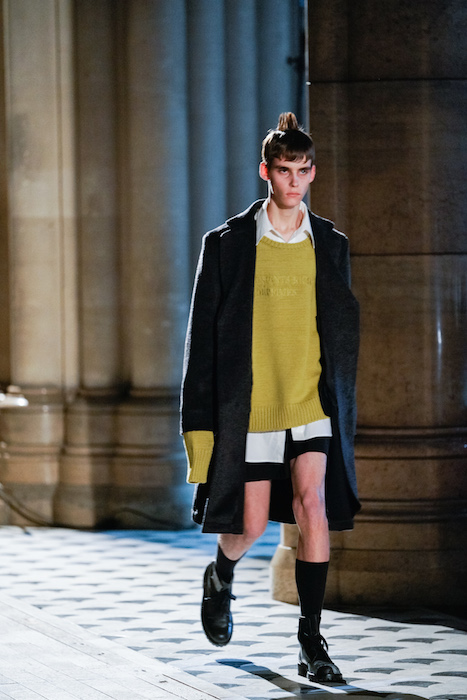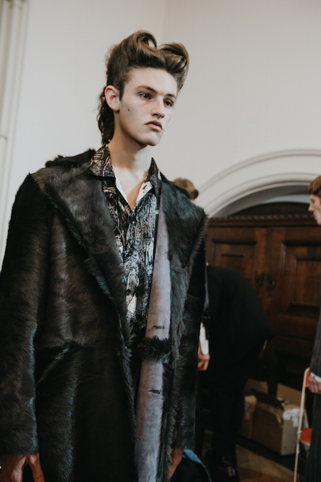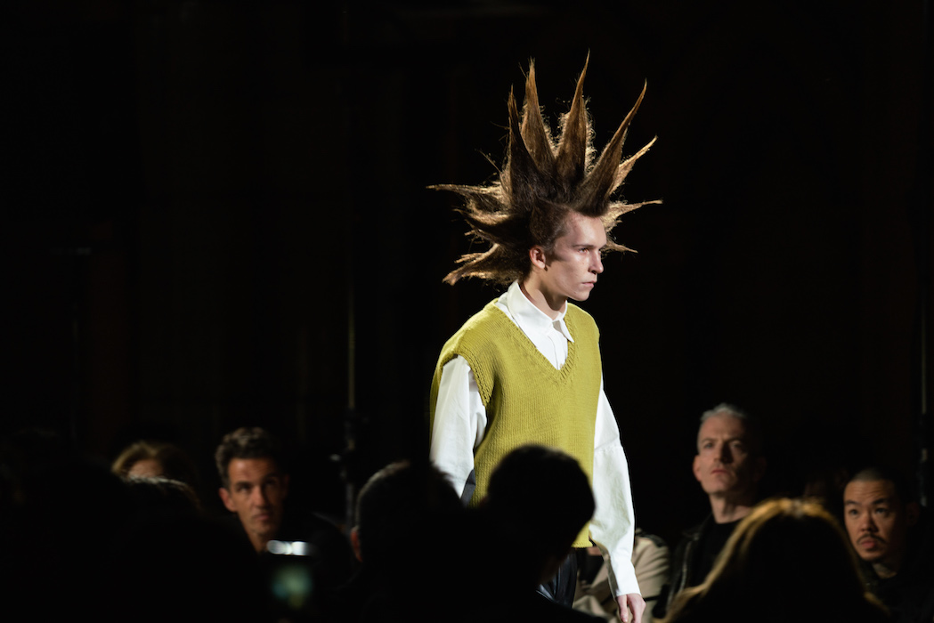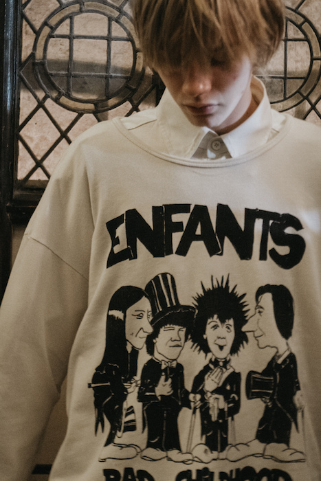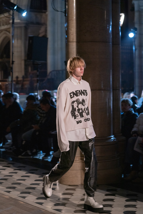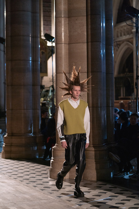 CHILL in layers. LES ENFANTS DEPRIMES offers up a cool casual now fashion vibe mixing up streetwear with classics. Big hair, punk and funk hair accessorized the layered looks at the fall winter 2020 show held during Paris Mens Fashion Week.