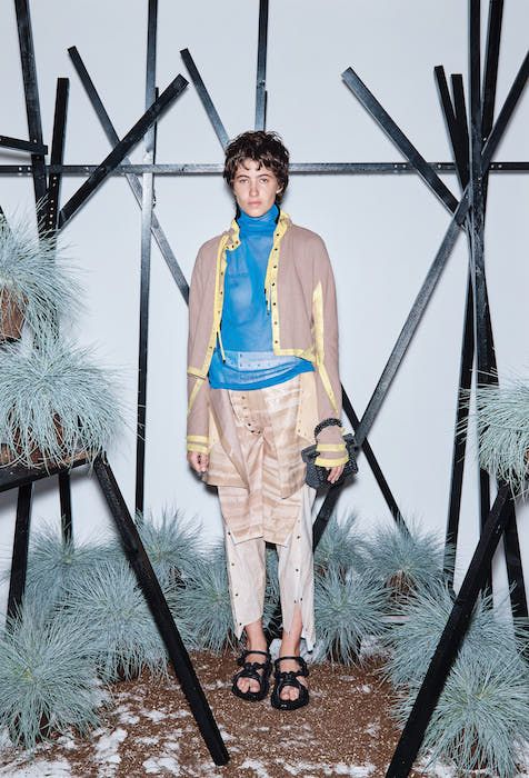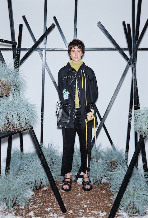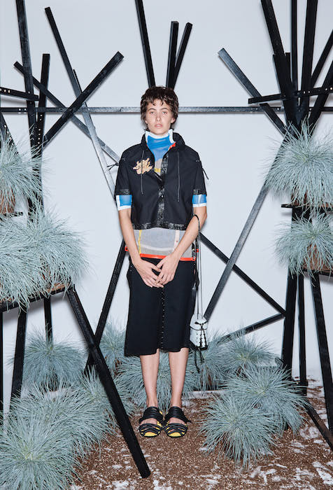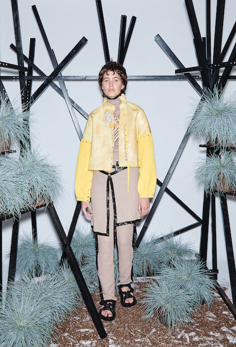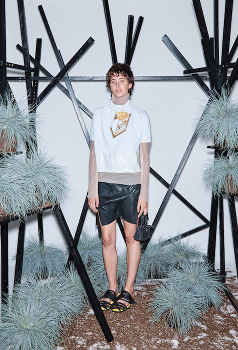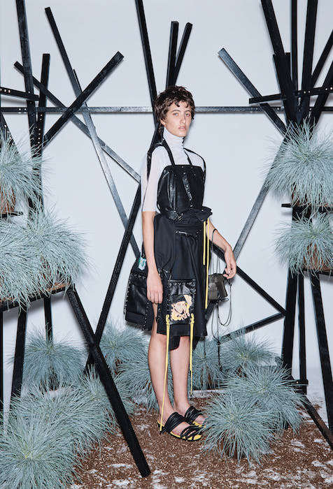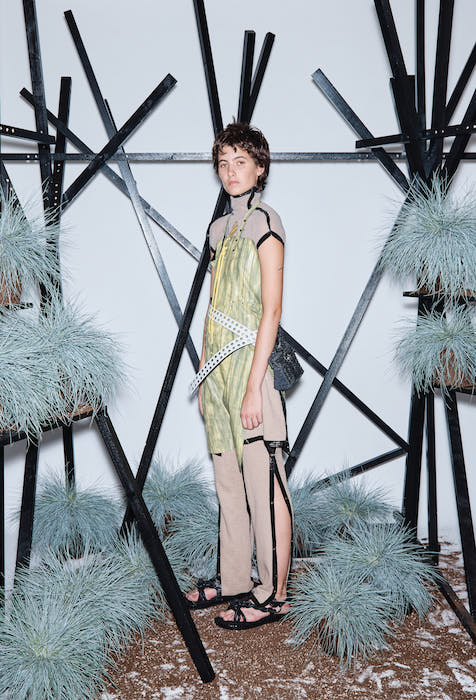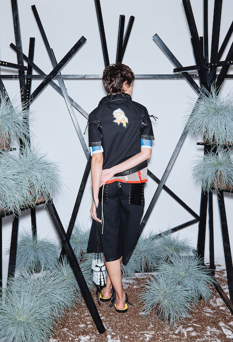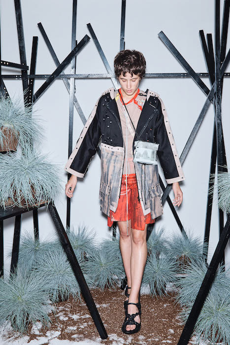 YOUNG + Fabulous: Quoï Alexander SS18 is fresh fashion with a twist. Exploring fashion without traditional sewing -neither by hand or machine. This season, the young designer features silicon elastomer bonded with cotton tulle, canvas and leather which is then punctured with metal to create a non-stiched “seamless” construction.