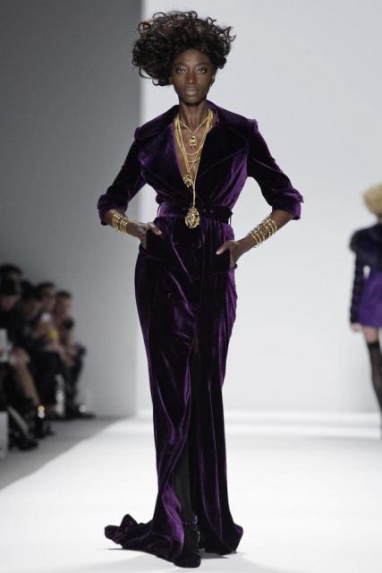 Most of the pieces in this collection were approached with a modern eye; the colors used were strict (onyx, taupe, caramels and graphites) however there were a few lively sapphire and amethyst hues thrown into the pile of timeless classics. A lot of the shorts and dresses were completed with black tights and topped with frilly shoes. The collection was abundant with “the boyfriend” fitted trouser, and the singular-buttoned tuxedo blazer. Models on the runway sported perfectly teased curls compiled in a buoyant undo, smoky-shadowed eye-makeup, and a nude lip. Zang Toi refined Imperial Russian appeal with twenty-first century finesse to create a cutting-edge collection for fall. Written by Julia Paulescu.