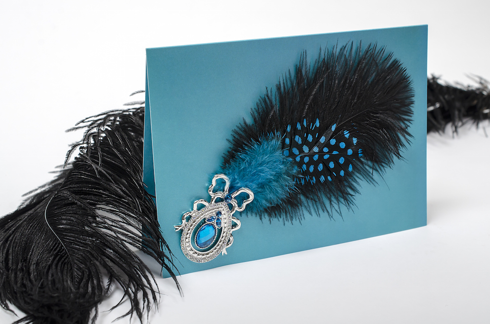 Inspired by Zang’s runway ‘masterpieces’ , the collection consiststs 24 bespoke cards and two boxed notes. Textures included fabrics, jewels, beading, feathers and intricate stitching…