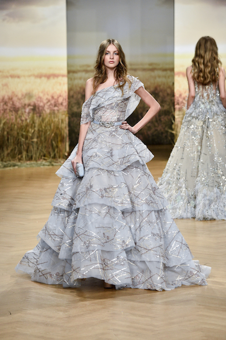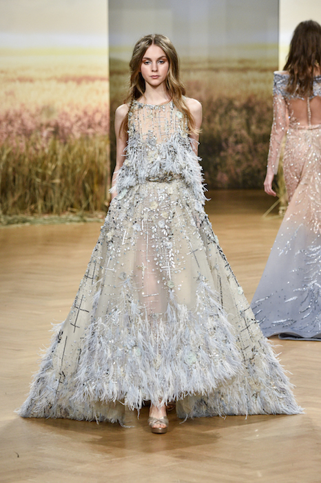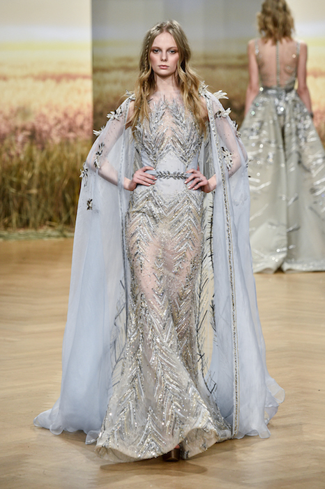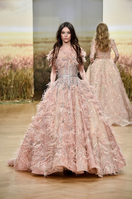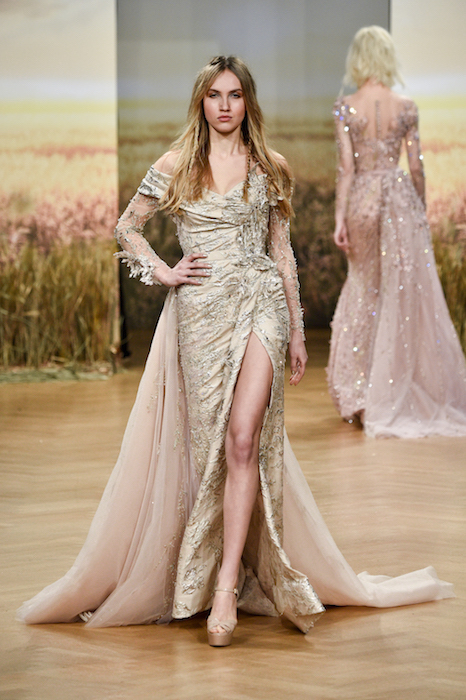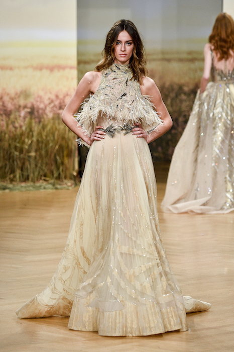 GOLDEN GOWNS celebrating the “Goddess of wheat” and “Mother of the Earth” at ZIAD NAKAD COUTURE ss18 Paris. A subtle dreamy flow of silk embroideries and sparkle mingle with sublimated tulles.